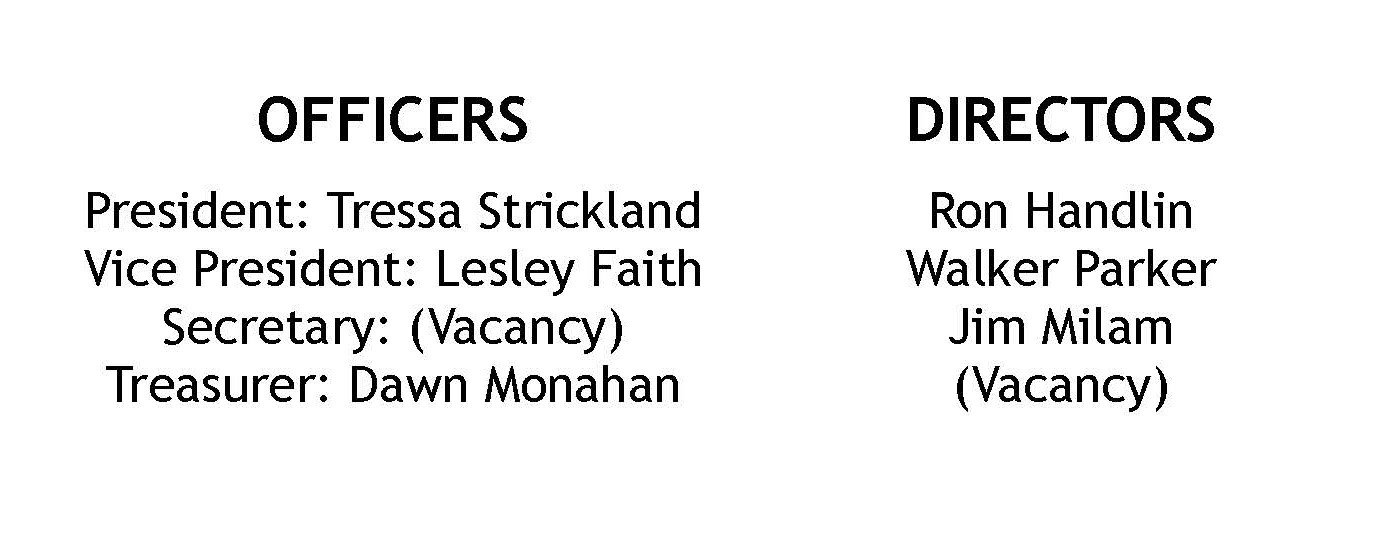 There is an elected board that carries on the business of the association each year. The general membership elects these officers and directors for two year terms.